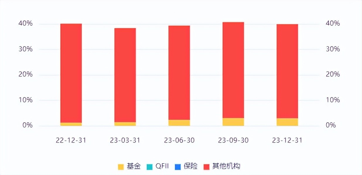 看过我文章的朋友应该都知道,股东情况往往隐藏着投资风向。截至2023-12-31,共7家主力机构持有中信海直,持仓量总计2.84亿股,占流通A股的39.92%。其中,一般法人3家,社保基金1家,基金3家,近几年来看,机构持股比例始终在徘徊在40%上下,除去一般法人,在一定程度上,中信海直还是受机构青睐的,只不过从这些机构的投资风格来看,基本属于长线投资。