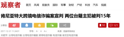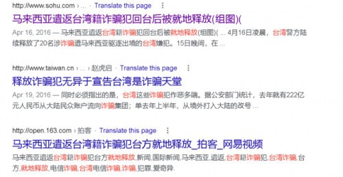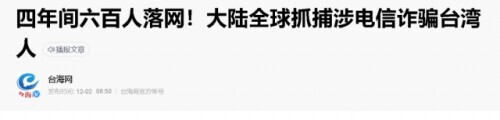 然而,这篇已经严重违反了一个中国原则的报道,却只字未提这些被绳之以法并被送回到大陆进行审判的台湾籍人士,根本都是已经被人赃俱获、并已被中国法律定罪的电信诈骗犯。