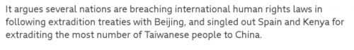 可BBC在报道中虽然提到了在西班牙和肯尼亚被抓获的台湾人,却故意隐瞒了这些人所涉及的犯罪案件和罪行,反而是大肆炒作这一抓捕“侵犯人权”。