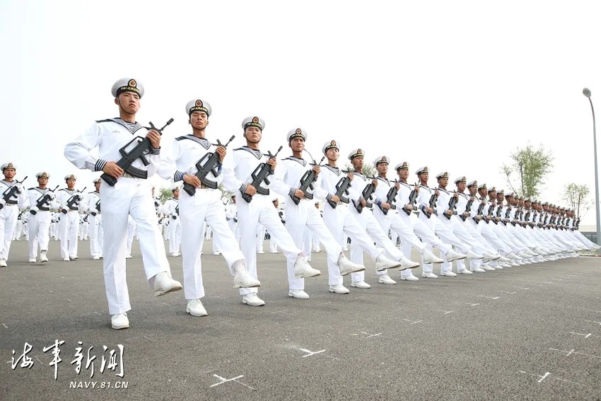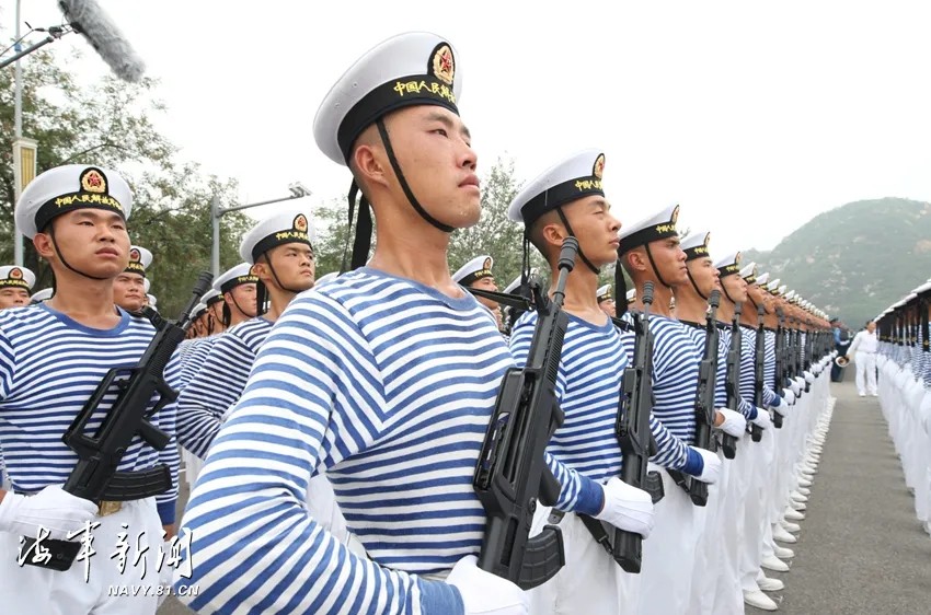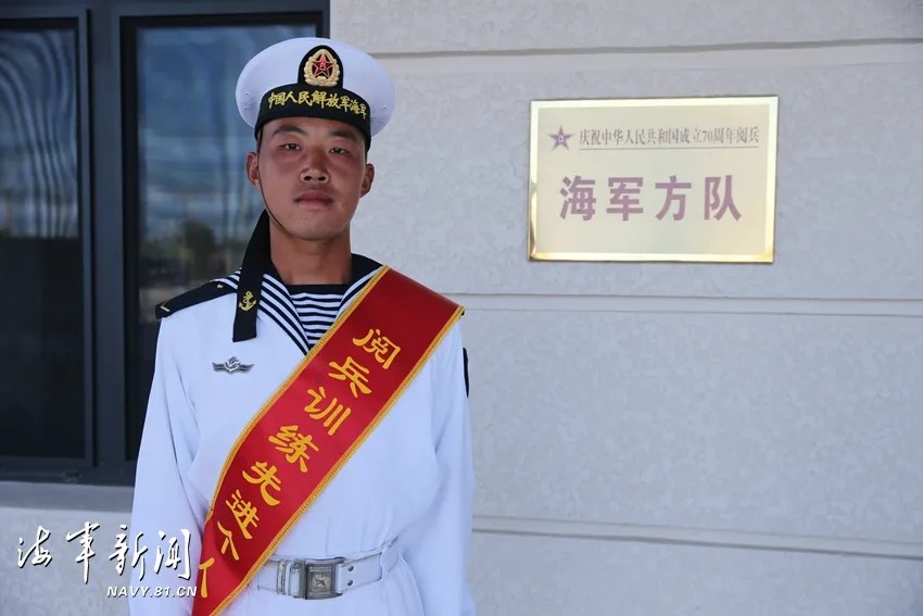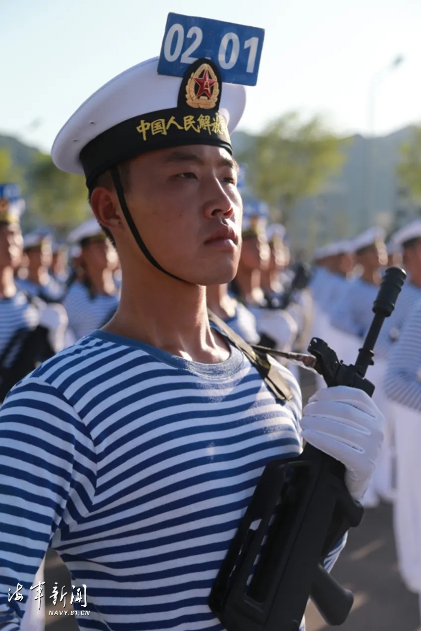 位列海军方队二排面第一名