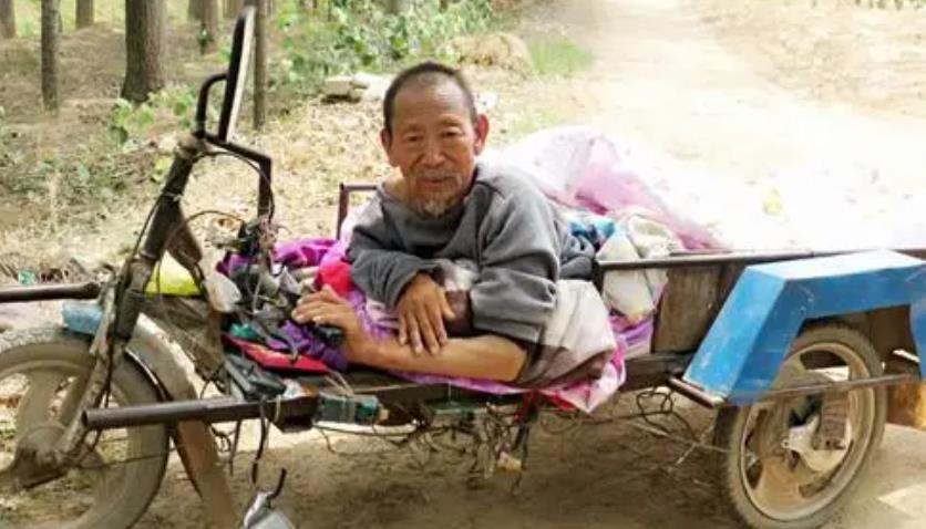 老人叫老玉,是个苦命的人,十八岁那年一场大病让他高位截瘫,自此在板车上躺了四十多年。
