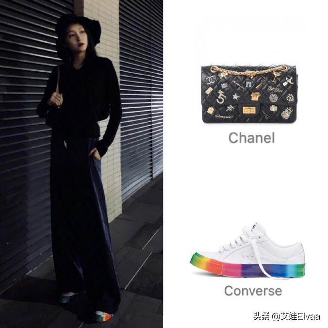 话又说回来,关晓彤的衣品真是越来越高级大牌了,这次也没有例外,一身黑的打扮关晓彤选择了用这双999的彩虹色平底鞋来增加全身的亮点,不仅如此,还拎了一只66000的金属链条包包,这深夜美照一不小心就露富了,不过看似奢侈的衣品也还是挺别致的。