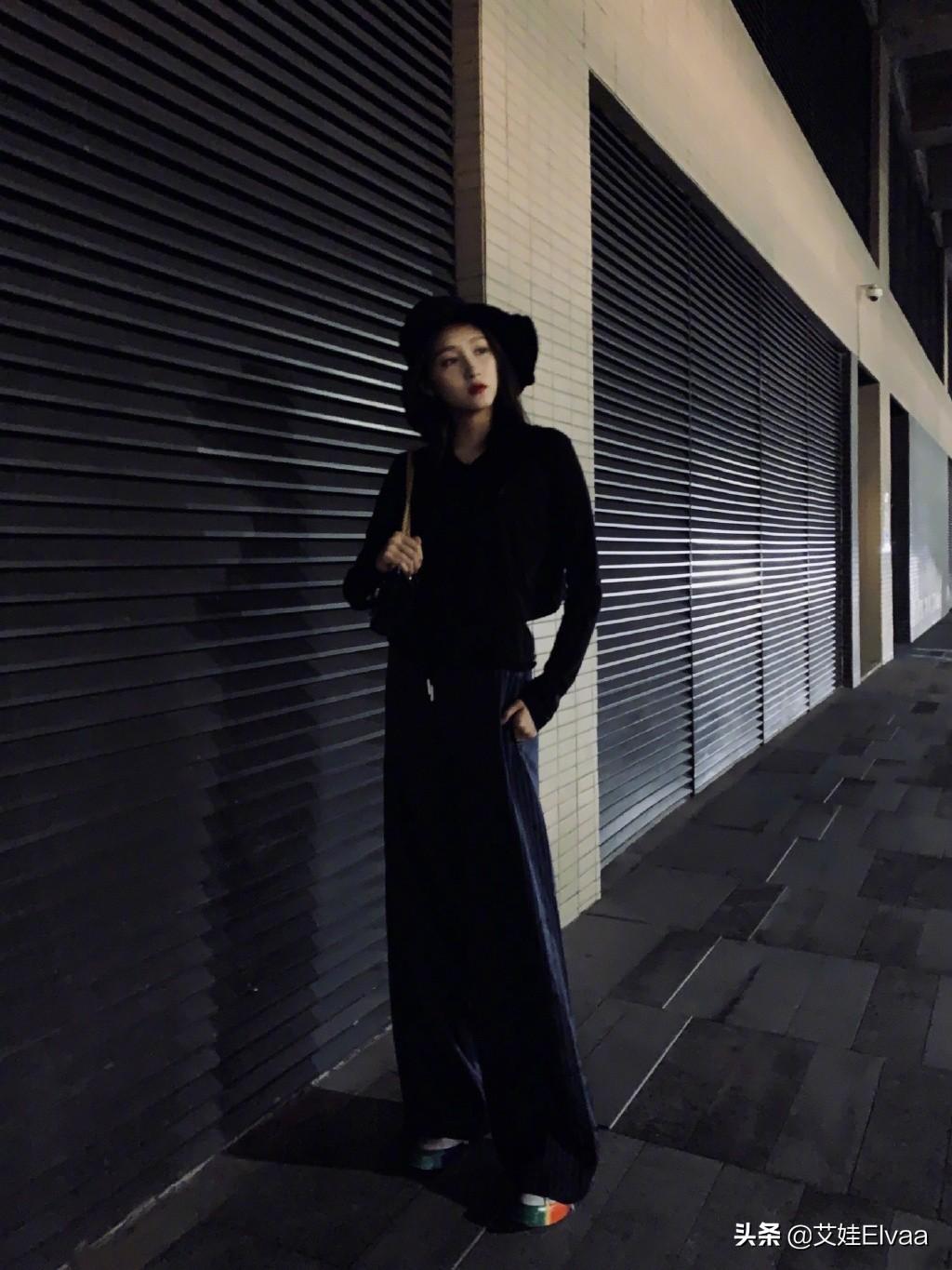 只见美照中的关晓彤选择了一身ALL BLACK的打扮,不过这次黑色系的画风看上去更加的霸气有气质,黑色的衬衣搭配同色系的牛仔阔腿裤,踩着一双彩虹色的平底鞋,整体造型简洁利落,很自然,虽没有高跟鞋的加持,但是这身材还是那么的高挑有型,特别是黄金般的身材比例毫无修饰就能尽显,优雅低调又不失吸睛效果,让人看上去苗条又显瘦,太适合关晓彤的风光和气质来,在黑夜中别有一番滋味。