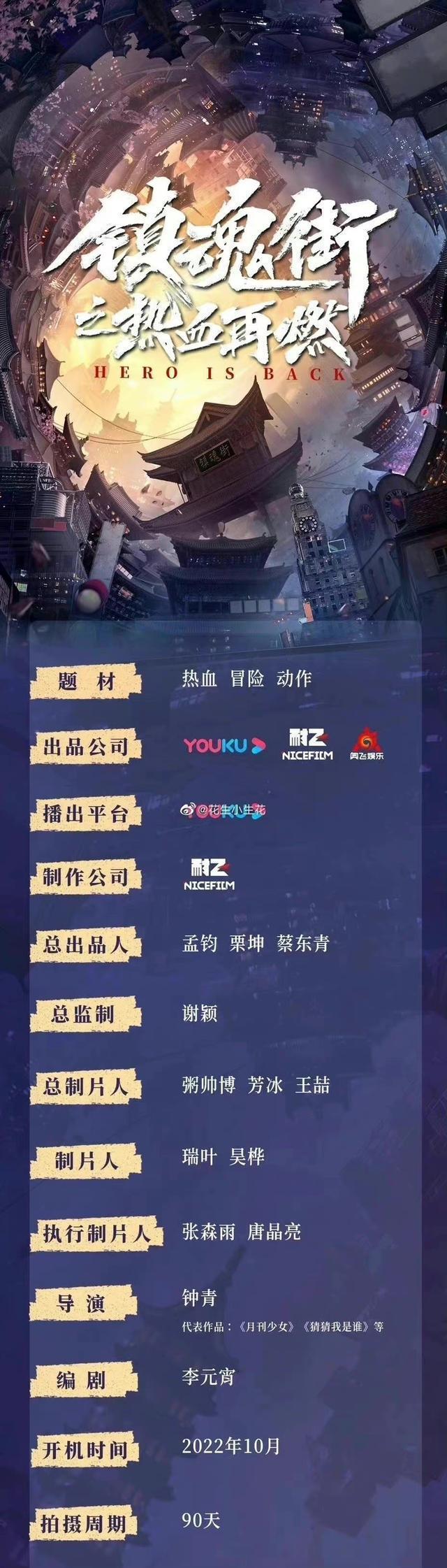 这部,最近几天就传出来了一个好消息,镇魂街真人版网剧重启了,名字叫做“镇魂街之热血再燃”,今年十月份开机,拍摄周期的话大概是90天,在优酷独家播放,那么相信用不了多家,可能在明年大家就能看到这一部网剧了。