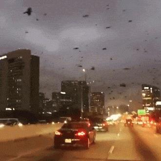 2019年1月,在美国奥斯汀的一条高速公路上,人们发现天空在瞬间变得昏暗了起来。人们抬头观察之后,目瞪口呆的发现了大量黑鸟在天空中盘旋。这个奇怪的现象,甚至一度让当局关闭了高速公路的一条车道。