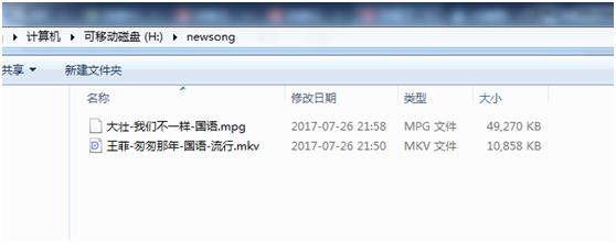 注意:文件要放到U盘里面的newsong的文件夹里面