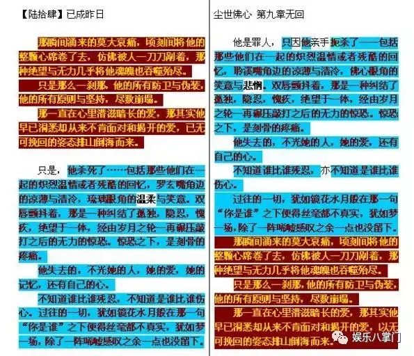 而从两部小说的内容来看,我们欣赏一下网友制作的抄袭对比图(即调色盘)