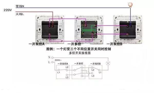 十三、 三开多控开关接线图
