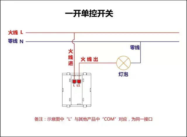 一、 一开单控开关接线图