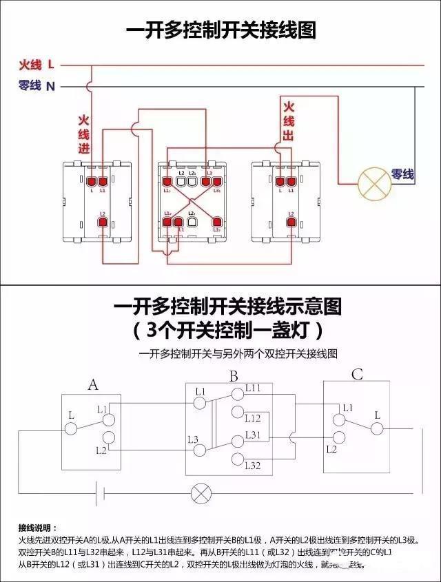 最全的开关接线图,单控、双控、三控都在这里,老电工都收藏了
