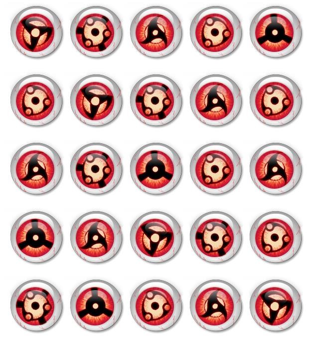 普通写轮眼——普通写轮眼的进化又可分为三个阶段,主要的形态变化体现为眼珠内勾玉的增加,最初开眼之时眼珠内只有一个勾玉,而进化过程受到自身的查克拉量、瞳术的使用熟练程度和接受刺激程度三个方面的影响。伴随查克拉的增强以及瞳术使用熟练程度和受到刺激程度的增加,普通写轮眼会不断进化,每进化一个阶段,眼珠内的勾玉便会增加一个,最多可达到三个,瞳术能力随勾玉数量的增加不断增强,三勾玉的写轮眼即普通写轮眼的最高级形态。拥有普通写轮眼的角色如宇智波族的斑、止水、鼬、佐助,以及旗木卡卡西和志村团藏。若未开至三个勾玉时 就杀死至重视的人开启万花筒写轮眼,眼睛会马上进化至三个勾玉。