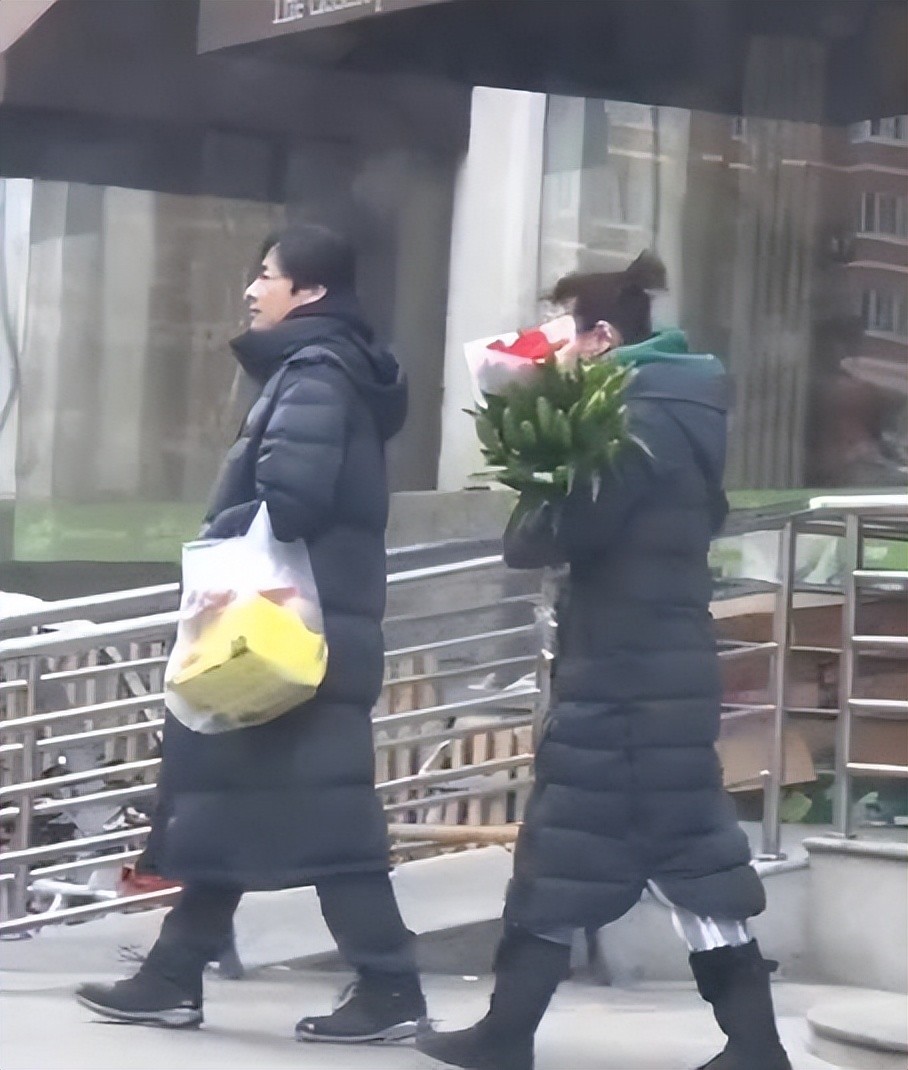 他们两人一前一后包裹的密不透风,祖峰提着一大袋东西,刘天池抱着一大束花。