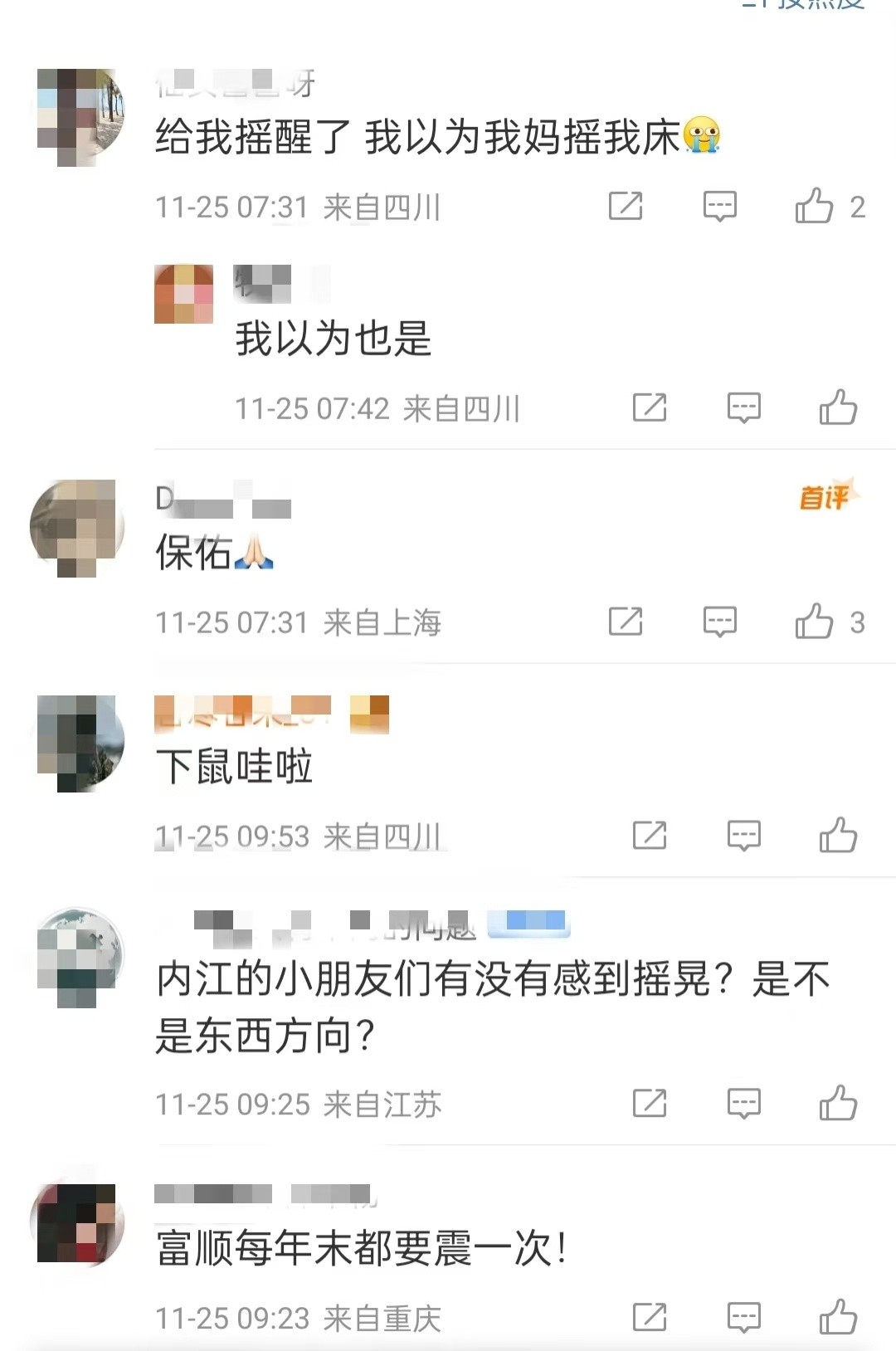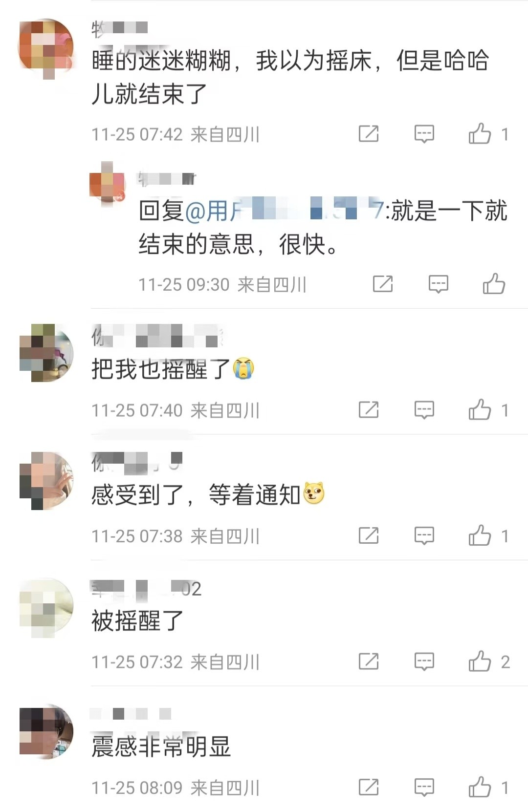 不同的人有不同的问题:内江的小朋友们有没有感到摇晃?是不是东西方向?