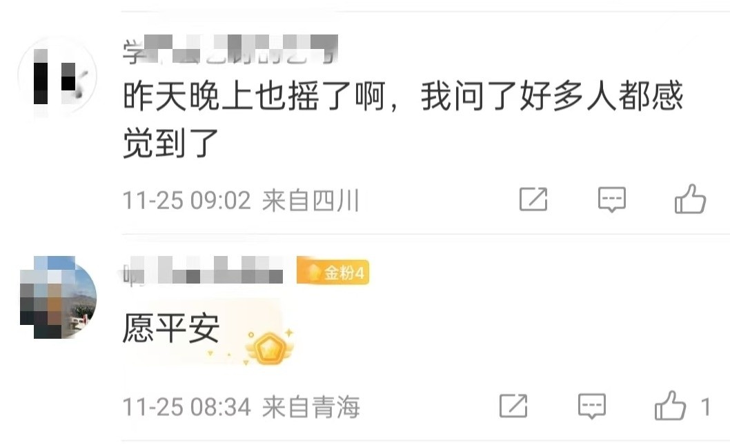 四川网友纷纷表示有震感,部分地区震感强烈——