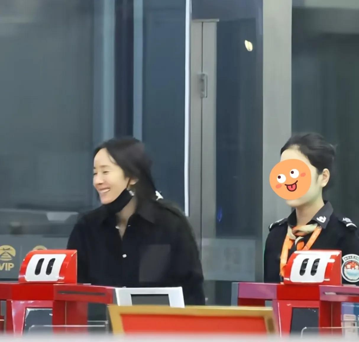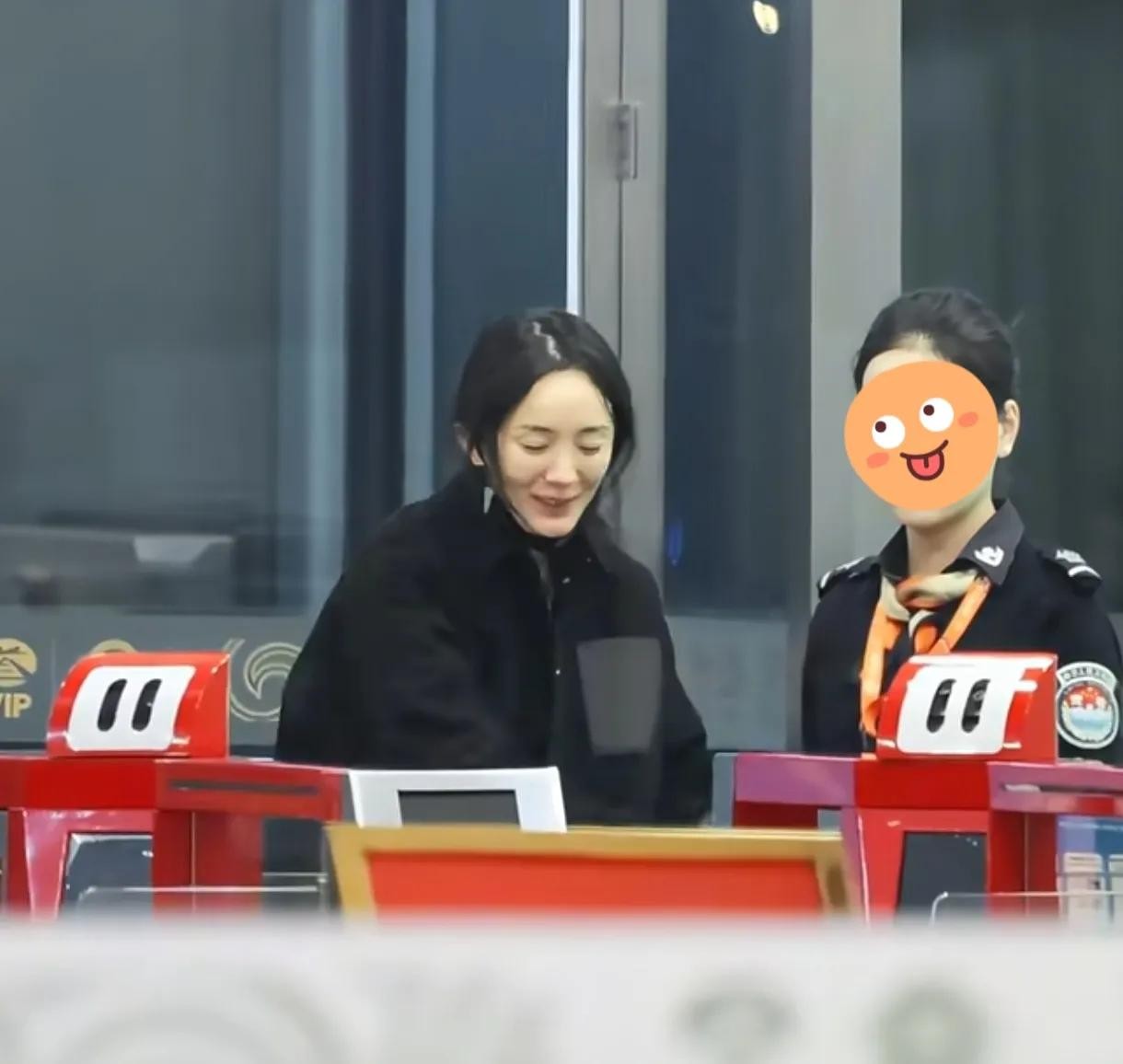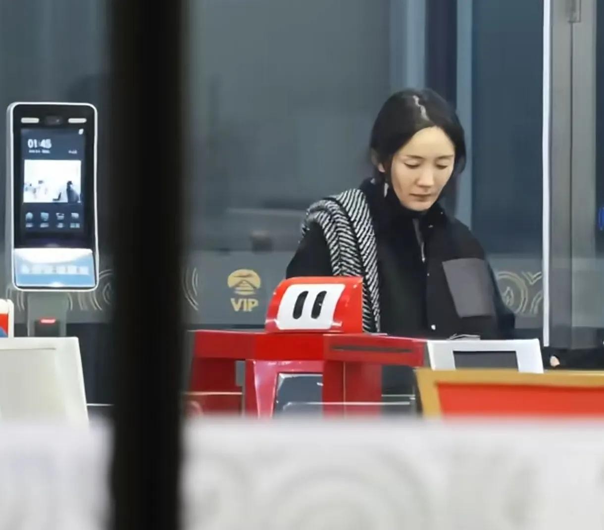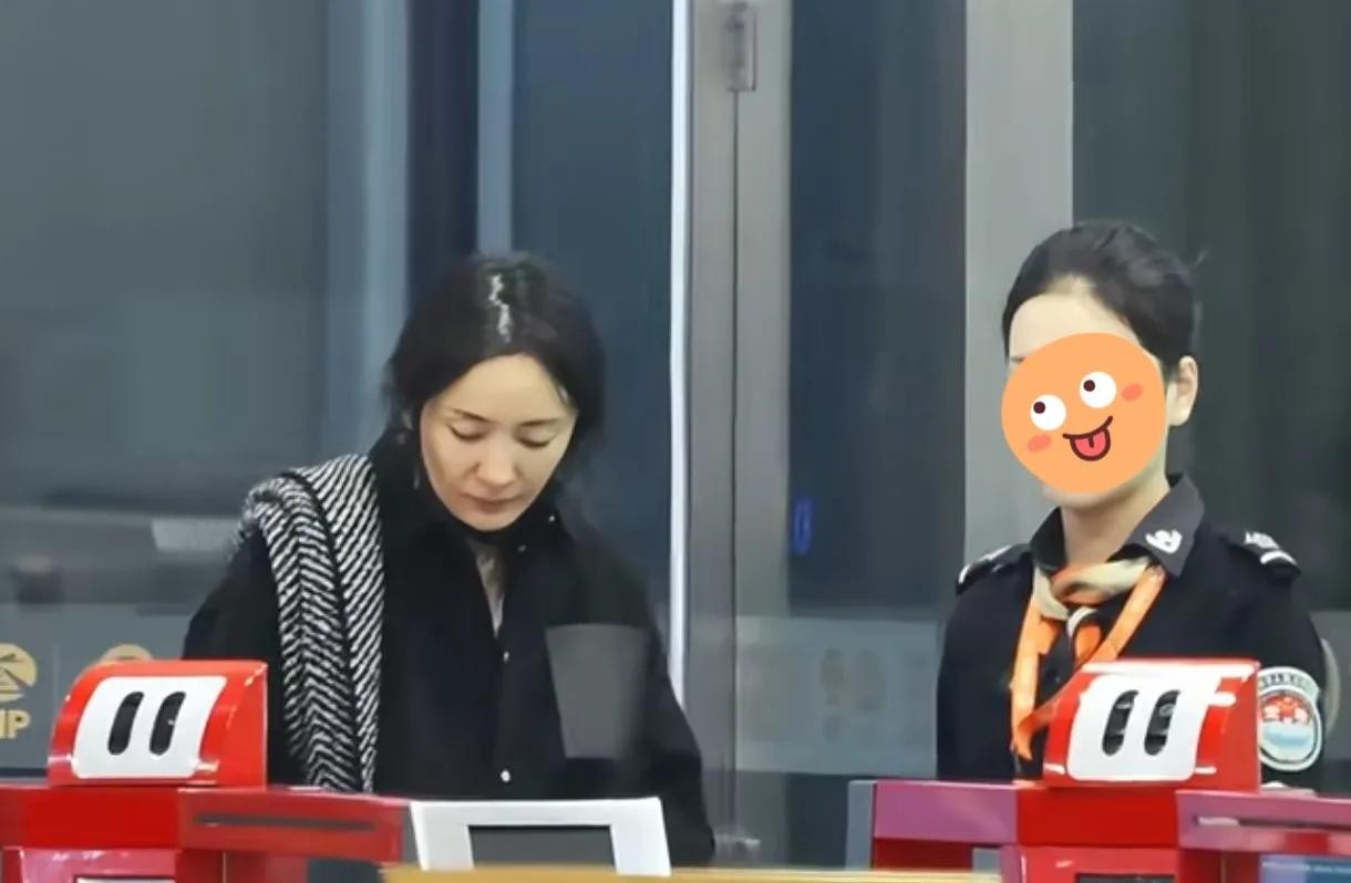 虽然知道是女明星杨幂,但工作人员还是比较淡定的,只是低头办理手续,杨幂发现有网友在拍摄,反而有点不好意思,可能觉得自己素颜吧,被拍到有点尴尬。