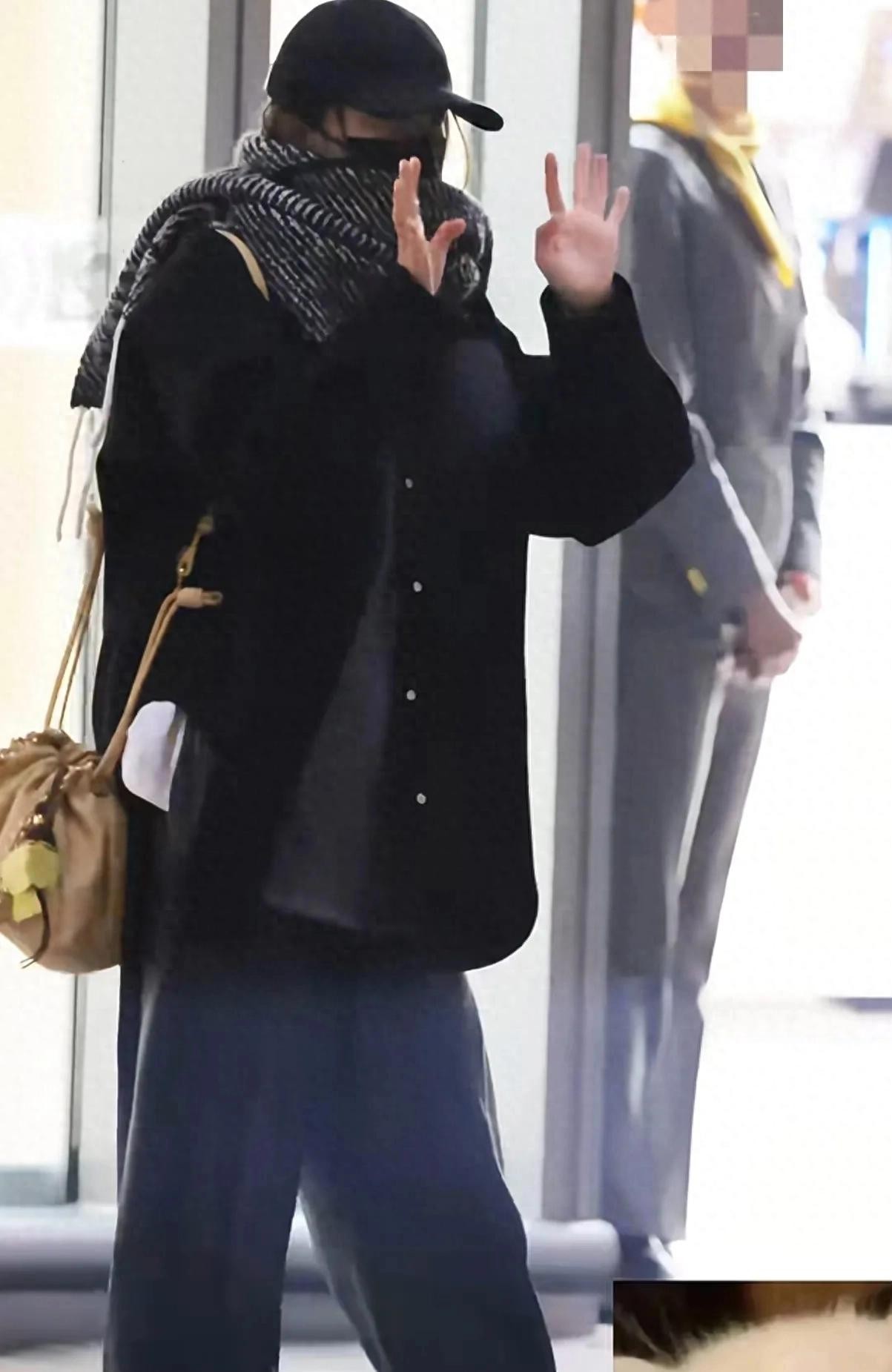 杨幂身穿全套Loewe,黑色羊羔毛外套搭配黑色皮裤,背着橙黄色的小包包,戴着口罩帽子包裹的比较严实,她下了车就挥着手和粉丝们打招呼。