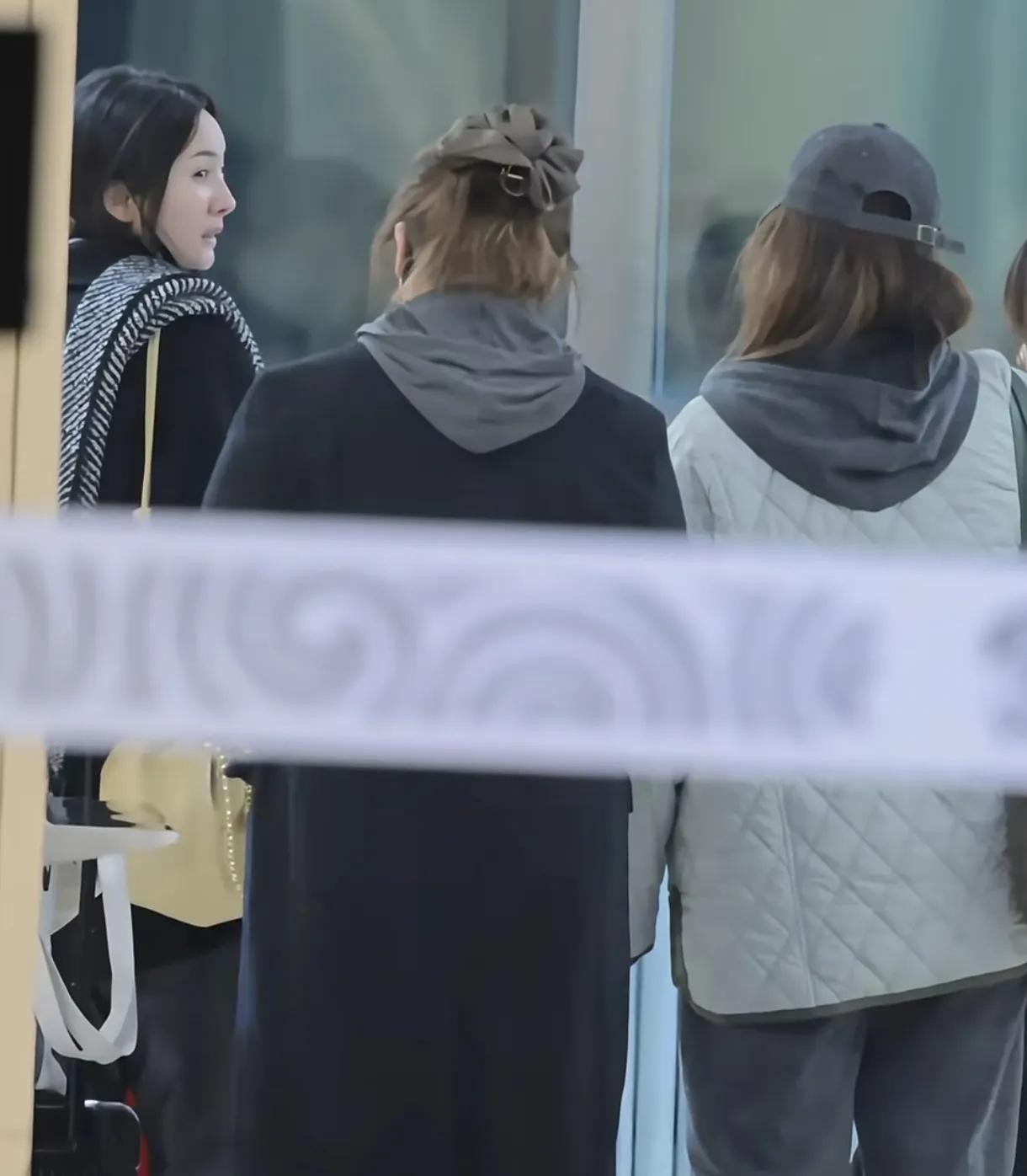 杨幂现身北京机场,出发巴黎时装周,发缝明显素颜看起来有点憔悴