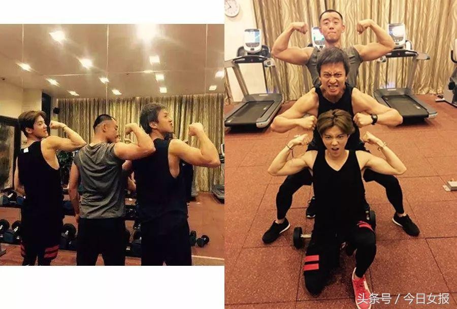 于是,在文艺健身圈,就有了这么一段传言:男士一旦沉迷强光,即使身材已经进阶,也依然会难以自拔。只不过,强光一照,纹理都变了形,谁看得出是胖还是壮?比如下面这张图,鹿晗身板小,手臂却和相邻的两位大哥一样粗壮。