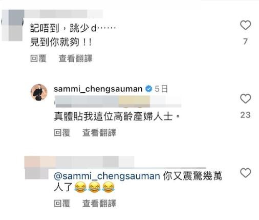 郑秀文回复这位网友“真体贴我这位高龄产妇人士。”