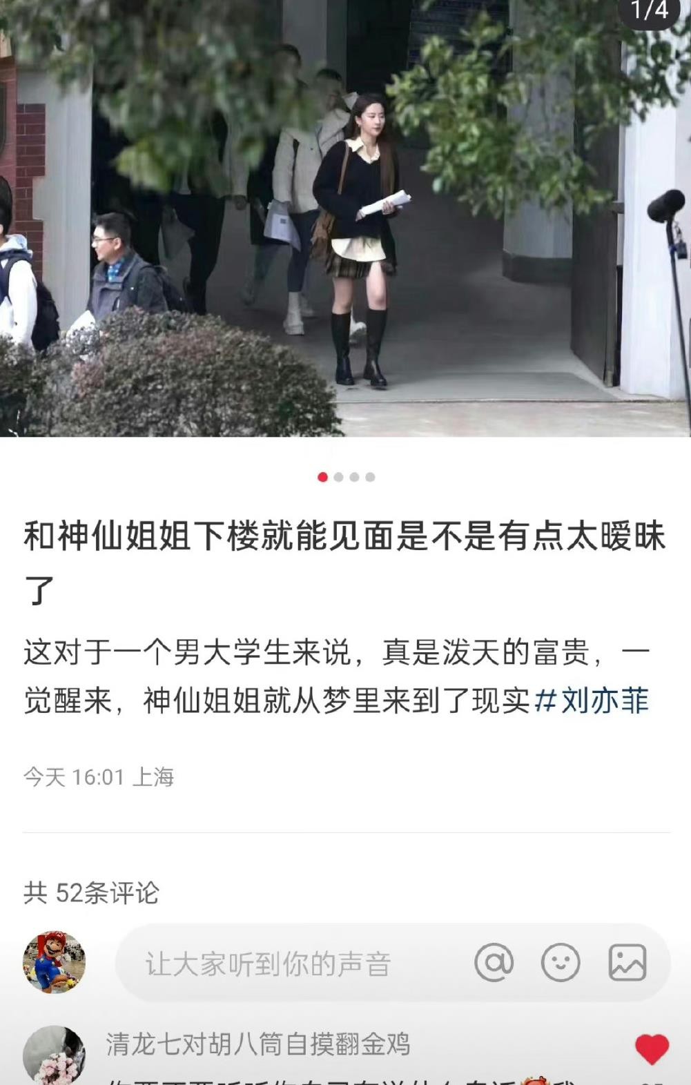 对于许多粉丝来说,这仿佛是梦幻成真的时刻。能够在校园里近距离看到刘亦菲,感觉就像是置身于一个童话故事中。那种梦境成真的感觉让人心情愉悦,仿佛整个世界都变得明亮而美好。