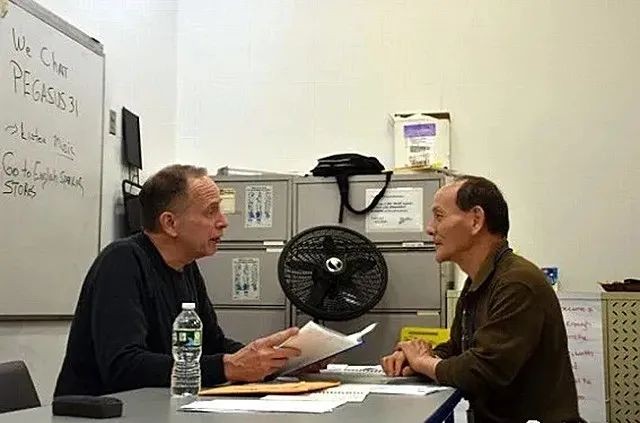 丁尚彪每周三天在法拉盛的成人英语夜校读书。