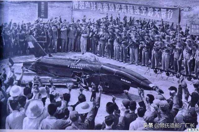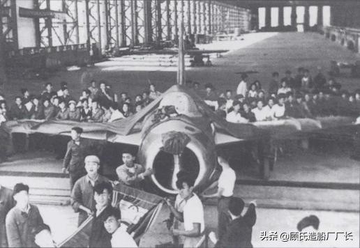 第一架国产的MIG-17Ф战斗机完成总装下线后被工人们簇拥着推出厂房时的场景