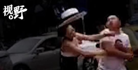 女子动手向男子扇打两个耳光