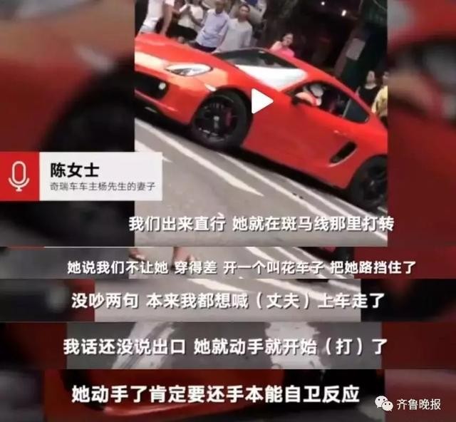 男司机的妻子介绍,他们当时直行,保时捷女司机嫌他们挡道,“她说我们不让她,穿得差,开一个叫花车子”。
