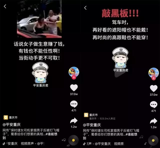 @平安重庆 官方抖音号在视频中称,话说女子做生意赚了钱,有钱也不能任性啊!当街动手更不可取!敲黑板!!!驾车时再好看的遮阳帽也不能戴!再时尚的高跟鞋也不能穿!