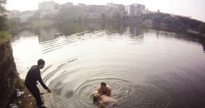 4月30日下午5点半,渝北区公安分局石船派出所接到一起紧急报警:一名男子在石船镇四方堰塘落水,水深八九米,情况十分危险。31岁的值班民警刘静接到警情后,带上绳子立即赶到落水现场。