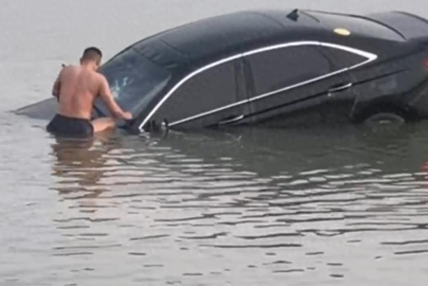 据介绍,12日下午,李南京和朋友到古城游玩,途中时看到一辆汽车漂浮在湖中,他立即让朋友停车,跳下车向湖边跑去。得知车里有人后,他迅速脱下衣服,接过群众递来的撬棍,用嘴咬着,向落水车辆游去。