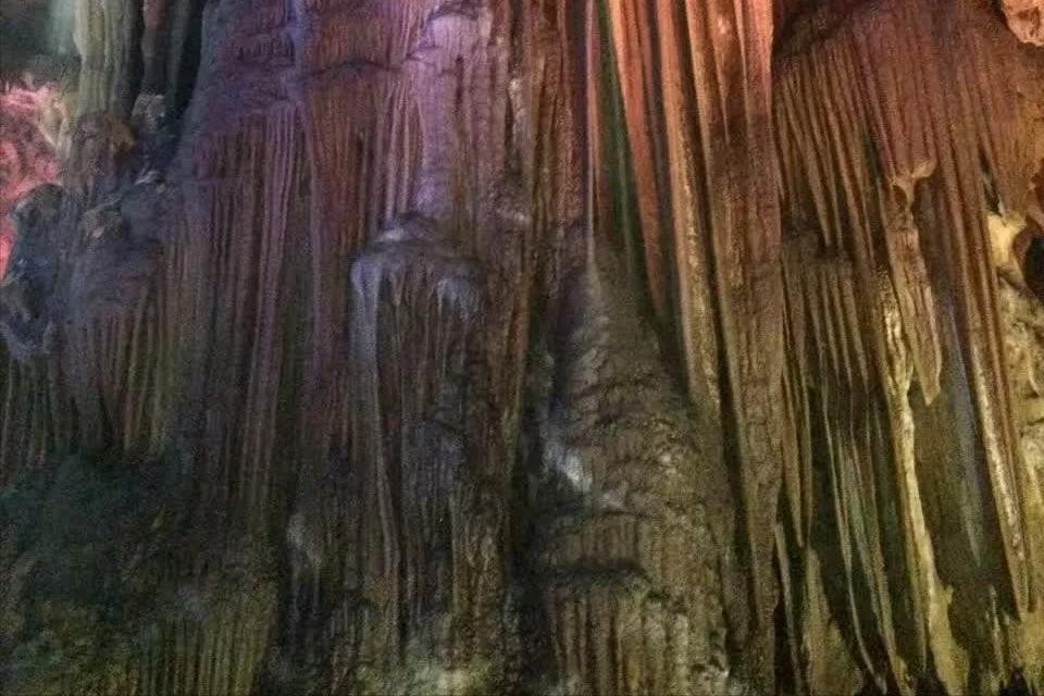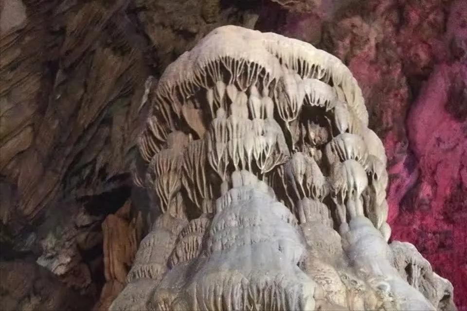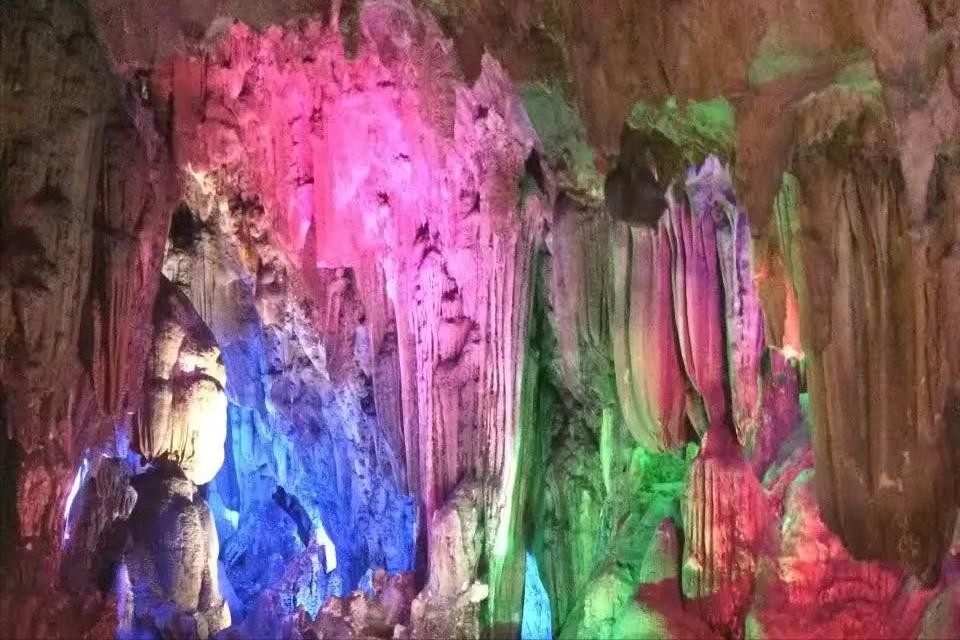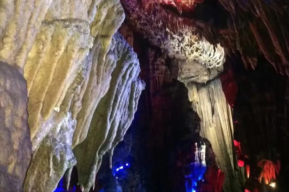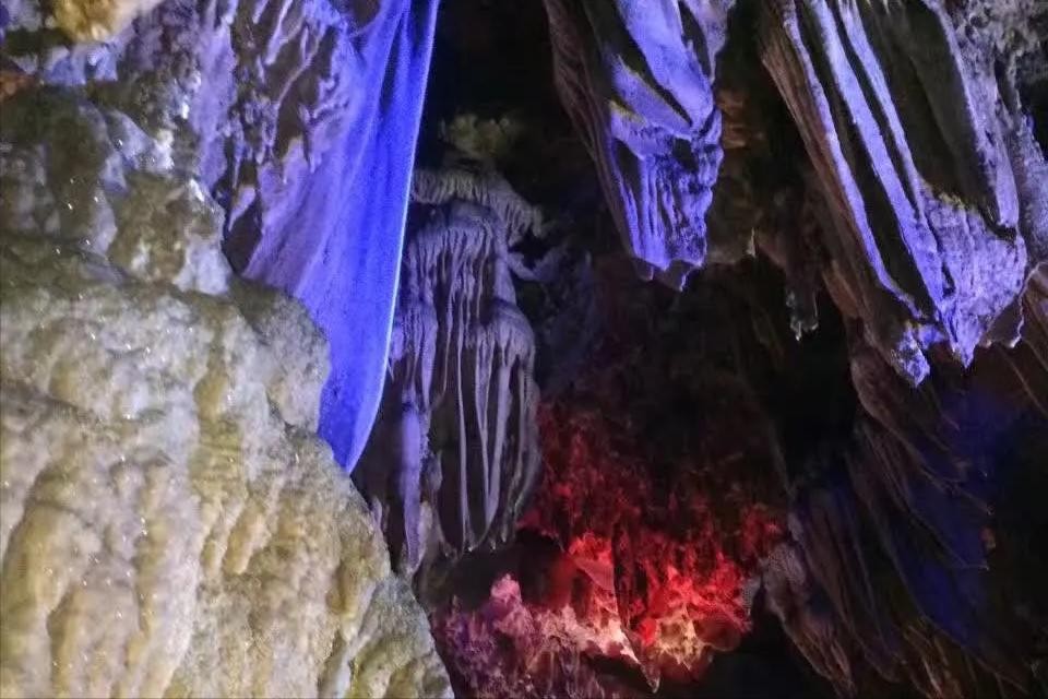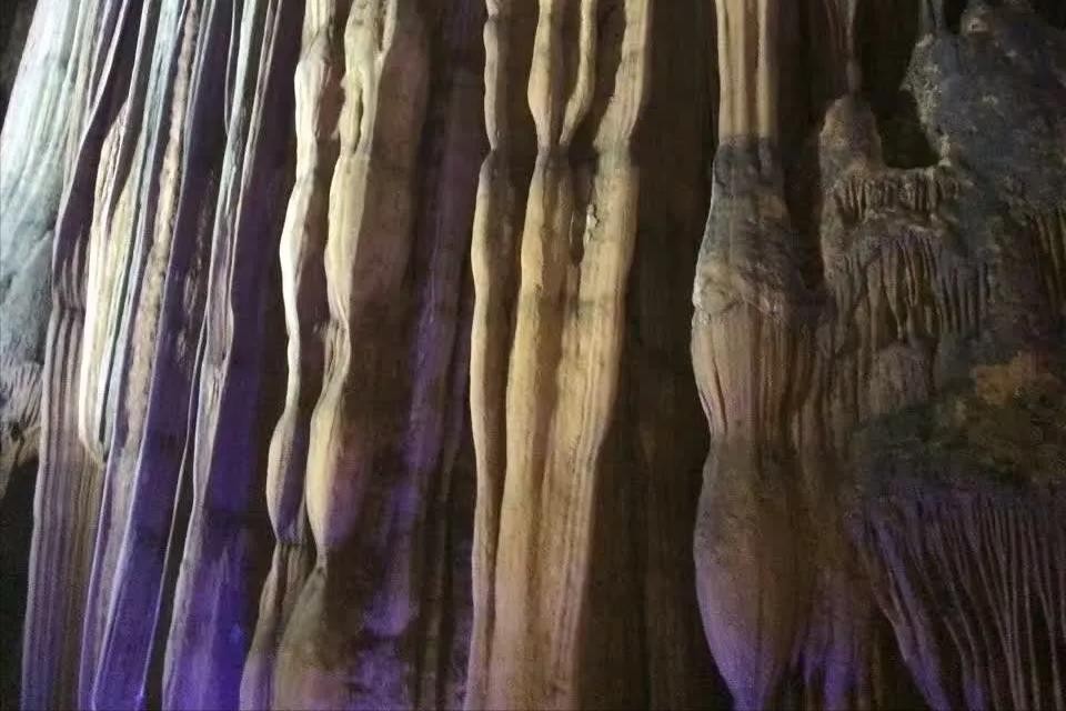 灯光辉映下钟乳石奇幻无穷,我们仿佛到了《西游记》里的地下龙宫。