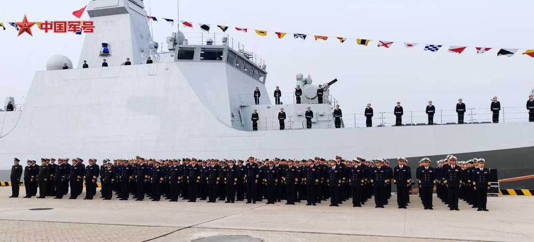 ▲054B导弹护卫舰“漯河”舰入列服役仪式现场(图片来源于:网络)