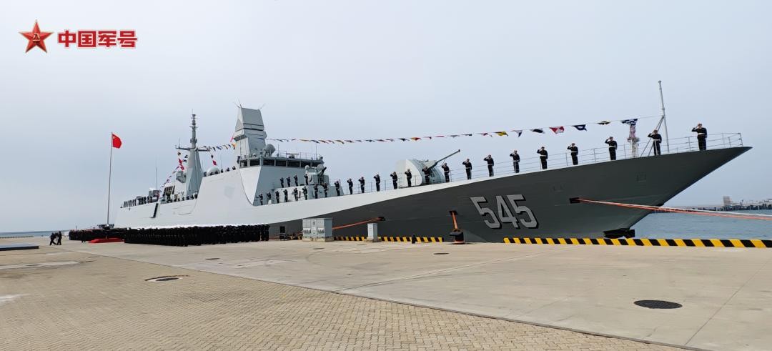 综合国内多家官方媒体的报道,中国海军于2025年1月22日接装了新一代导弹护卫舰054B的首舰“漯河”号,舷号545。据悉,该舰的入列授旗仪式于当天上午10时许在山东青岛某军港举行,接装的部队为中国海军北部战区海军(北海舰队)某部,海军、漯河市等军地有关部门领导,舰艇科研生产单位代表和部队官兵参加仪式。