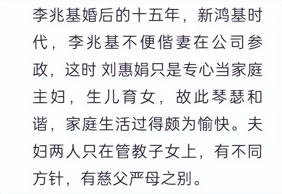 如今看来,刘惠娟才是真正的人生赢家,她为李兆基生了五个孩子,李兆基留下的遗产都归自己的子女们。