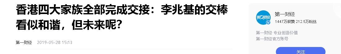 来源:第一财经2019-05-28 15:13香港四大家族全部完成交接:李兆基的交棒看似和谐,但未来呢?