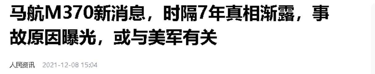 【3】人民资讯——马航M370新消息,时隔7年真相渐露,事故原因曝光,或与美军有关