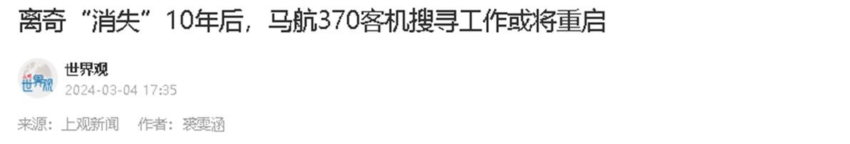 【2】上观新闻——离奇“消失”10年后,马航370客机搜寻工作或将重启