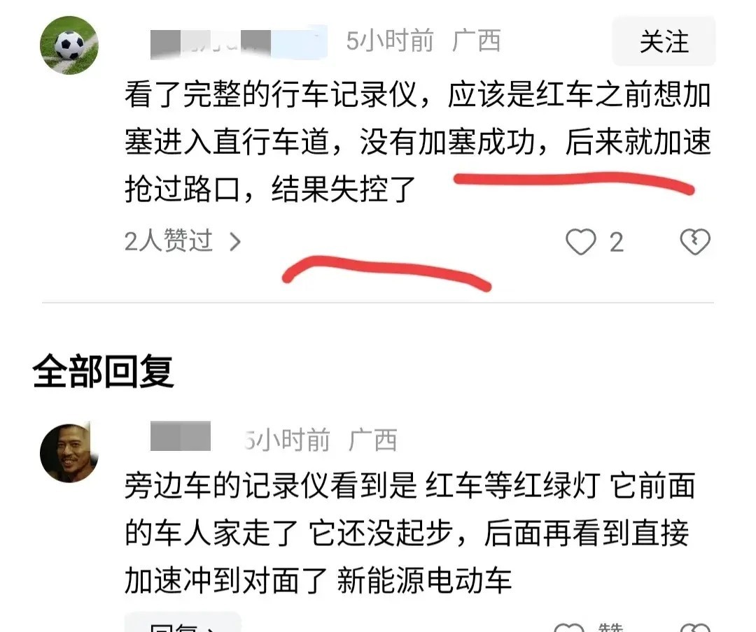 换个角度来看,视频中显示当时路面有些湿滑,可能是刚刚下过雨的缘故。如果红色轿车是新能源车,雨天加速行驶确实存在风险,但即便如此,为什么司机不选择转向呢?难道连方向盘都不听使唤了吗?还有网友推测,或许司机原本打算直行,但由于此车道不允许直行,便试图挤入旁边的直行车道,可惜未能如愿,最终酿成惨剧。