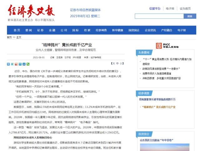 从文中的“任何一个产业,一项竞技都不能以毁掉一代人的方式来发展。”这句话可以看出国家对于游戏行业的发展也是密切关注的,并非因为它是一个新兴行业就开绿灯,尤其是这种利弊存在差异特别明显化的行业。根据我国青少年卫生部调查,到2020年为止全国上下的青少年以及有近一半人都处于近视的现状,而且具体原因都是因为熬夜打游戏造成。