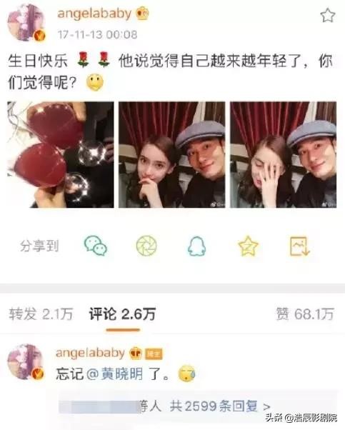 17年黄晓明生日时,Baby在社交平台上分享了二人共同庆生的照片以及二人的合照,还配上了打趣黄晓明的文字,并在评论区艾特了黄晓明,感情甜蜜十分惹人羡慕。