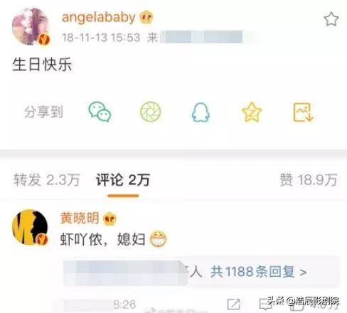 但也只发了四个字“生日快乐”外加一个生日蛋糕的表情,随后黄晓明也在评论区回复Baby“谢谢老婆”。