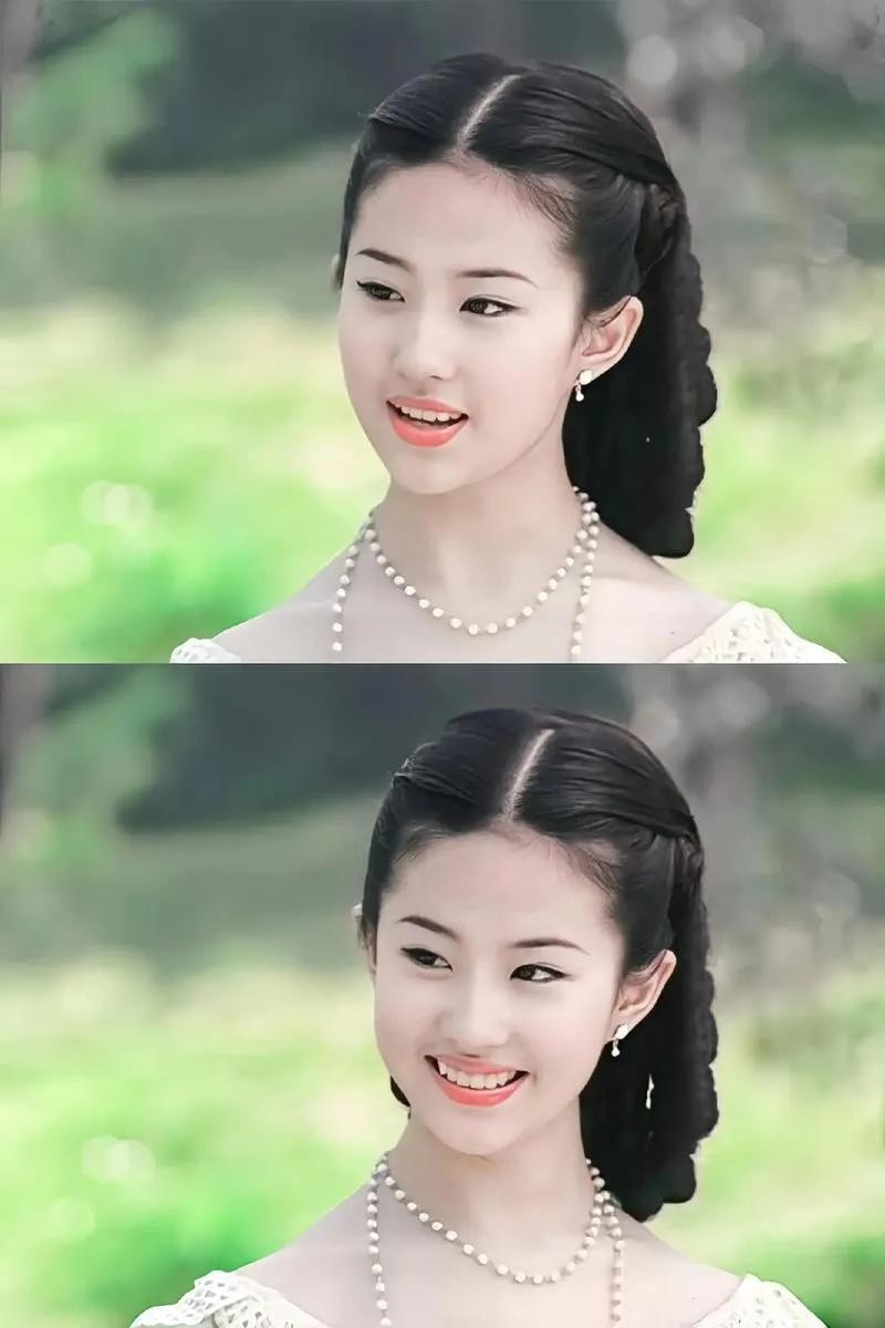 刘亦菲的颜值在当时可谓独树一帜。15岁的她,五官已经十分立体而精致:杏眼明亮如星,鼻梁高挺,唇形饱满又带几分柔和。那种未经雕琢的自然美,和白秀珠这个角色本身“高贵又带些任性”的特质相得益彰。