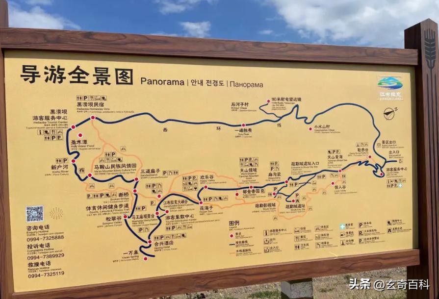 江布拉克是哈萨克语,意为圣水之源。景区主要景点有:天山麦海、疏勒古城、天山怪坡、花海子、江布拉克大峡谷、断桥、三道扁子、新户河等。其中石城子古城遗址,又称疏勒古城,位于奇台县半戴沟镇麻沟梁一村,地处天山山前丘陵地带,著名的疏勒城保卫战就发生在这里。