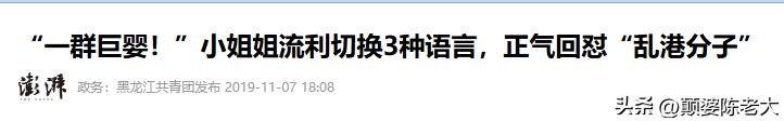 信息来源:澎湃新闻——“一群巨婴!”小姐姐流利切换3种语言,正气回怼“乱港分子”