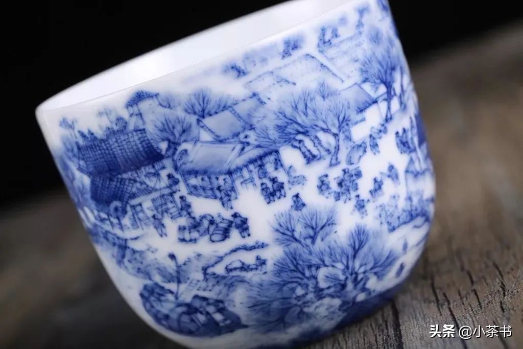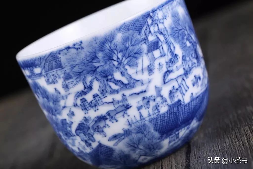 传统青花是精细描摹的大敌,灰釉在烧造过程中的流动所导致的青花料涸散是茶器人物绘画必须克服的难题,传统青白瓷也不利于人物绘画的视觉表达。九段经过大量的实验与失败,才寻找他所想要的泥、釉、青料组合。