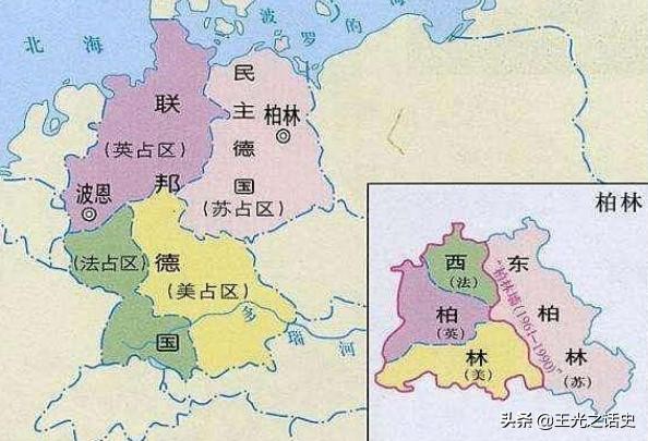 二战后,德国由美英苏法四国共同占领分治。冷战时期,美英法占领区组成联邦德国,苏联扶持民主德国