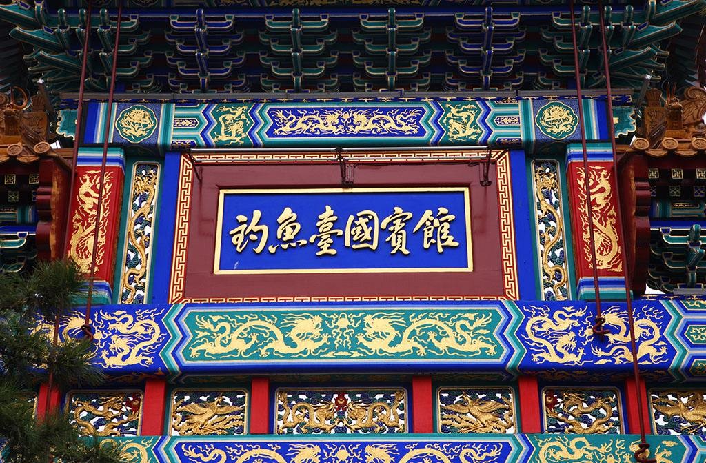 高台周围堆砌了雉蝶,就像一座小城堡。站在高台上,可以看到八一湖的全景,微风拂面而过。东面正门上方的横匾上,有一首清朝乾隆皇帝于1773年用草书写下的一首诗,记录了他扩湖治水的事迹。然而,这个高台还不是我们所说的钓鱼台。