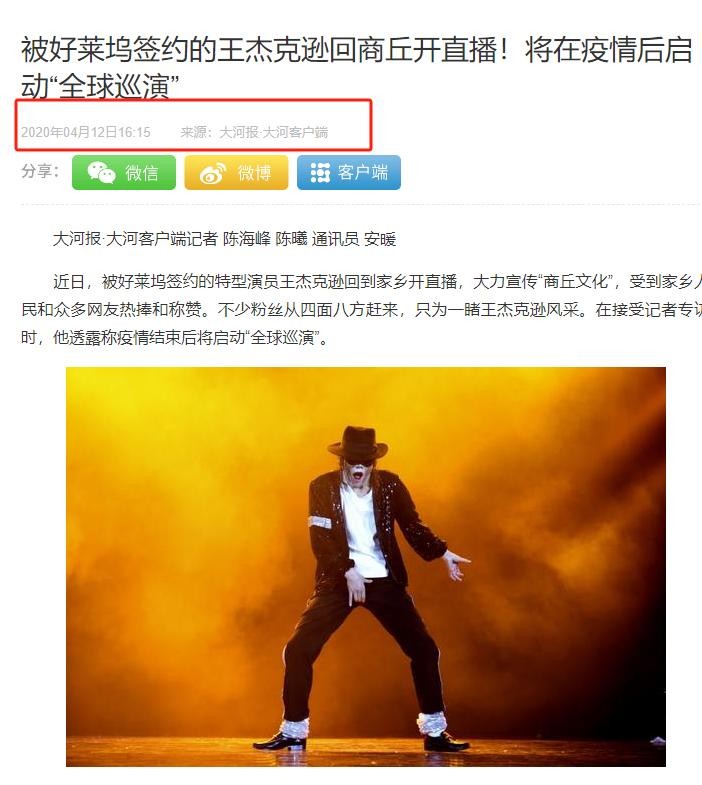 [2] 大河报 2020年04月12日 被好莱坞签约的王杰克逊回商丘开直播!将在疫情后启动“全球巡演”