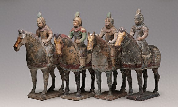 唐代彩绘贴金骑马俑